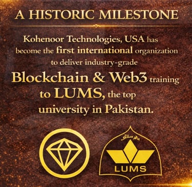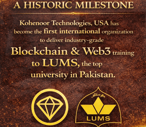 Official Newsfeed: Kohenoor Technologies USA, under the umbrella of Knowledge Gateway Pakistan, delivered the first-ever industry-grade training on Blockchain, DeFi, and Web3 to the Finance Department of Lahore University of Management Sciences (LUMS) from 19th to 23rd January, 2026, at LUMS Main Campus (DHA).